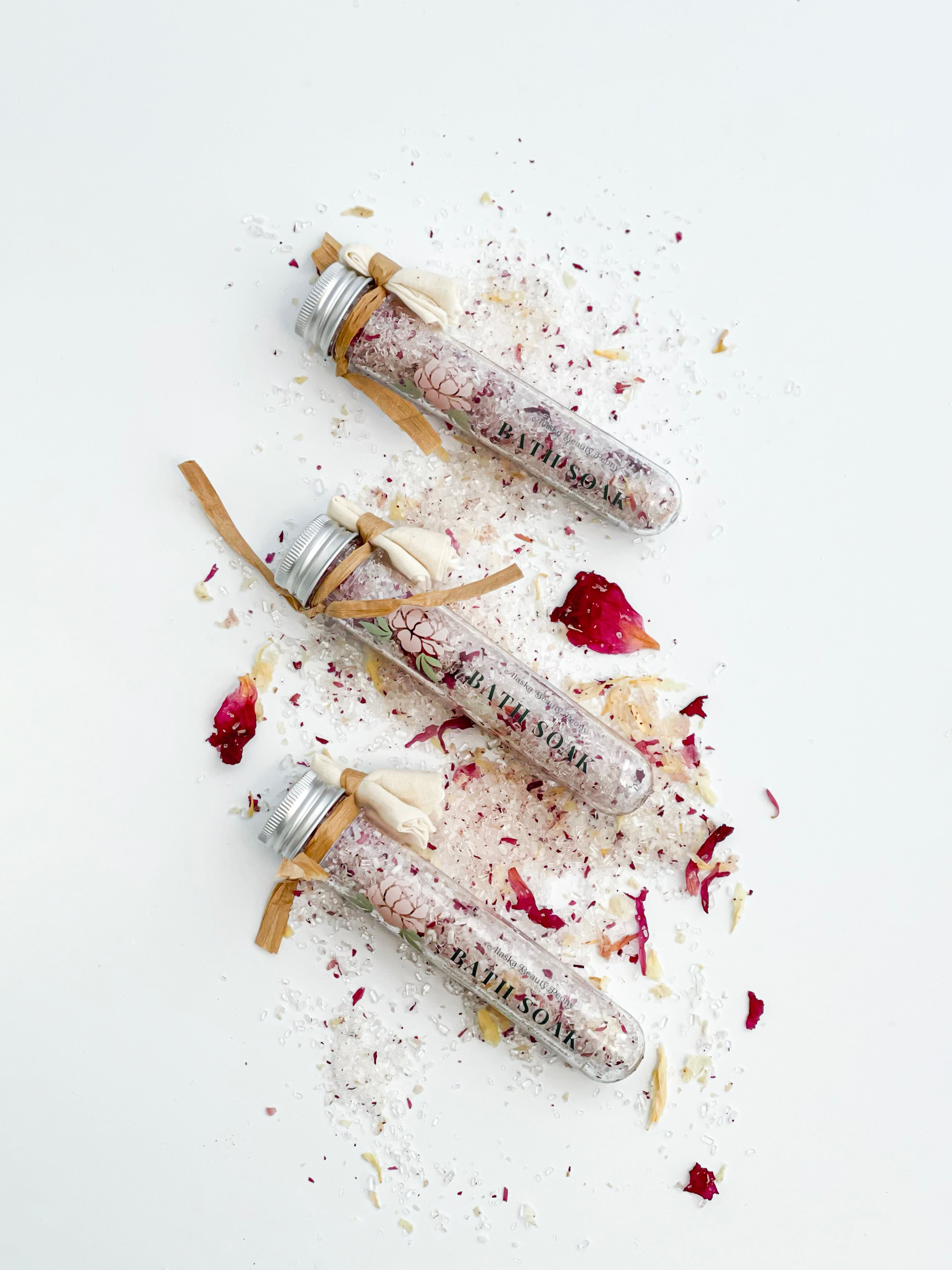 INGREDIENTS: Epsom Salt, Alaska Peonies, Kachemak Bay Sea Salt, Almond Oil, Organic Citrus Essential Oil.